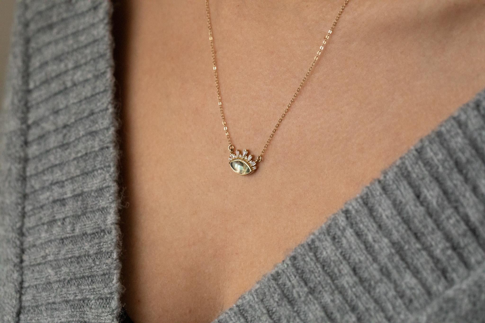 Büyük Taşlı Göz Altın Kolye, sadece bir aksesuar değil, aynı zamanda güçlü bir sembol. Ömür boyu bakım ve onarım garantisi ile, bu parça her zaman sizinle olacak.