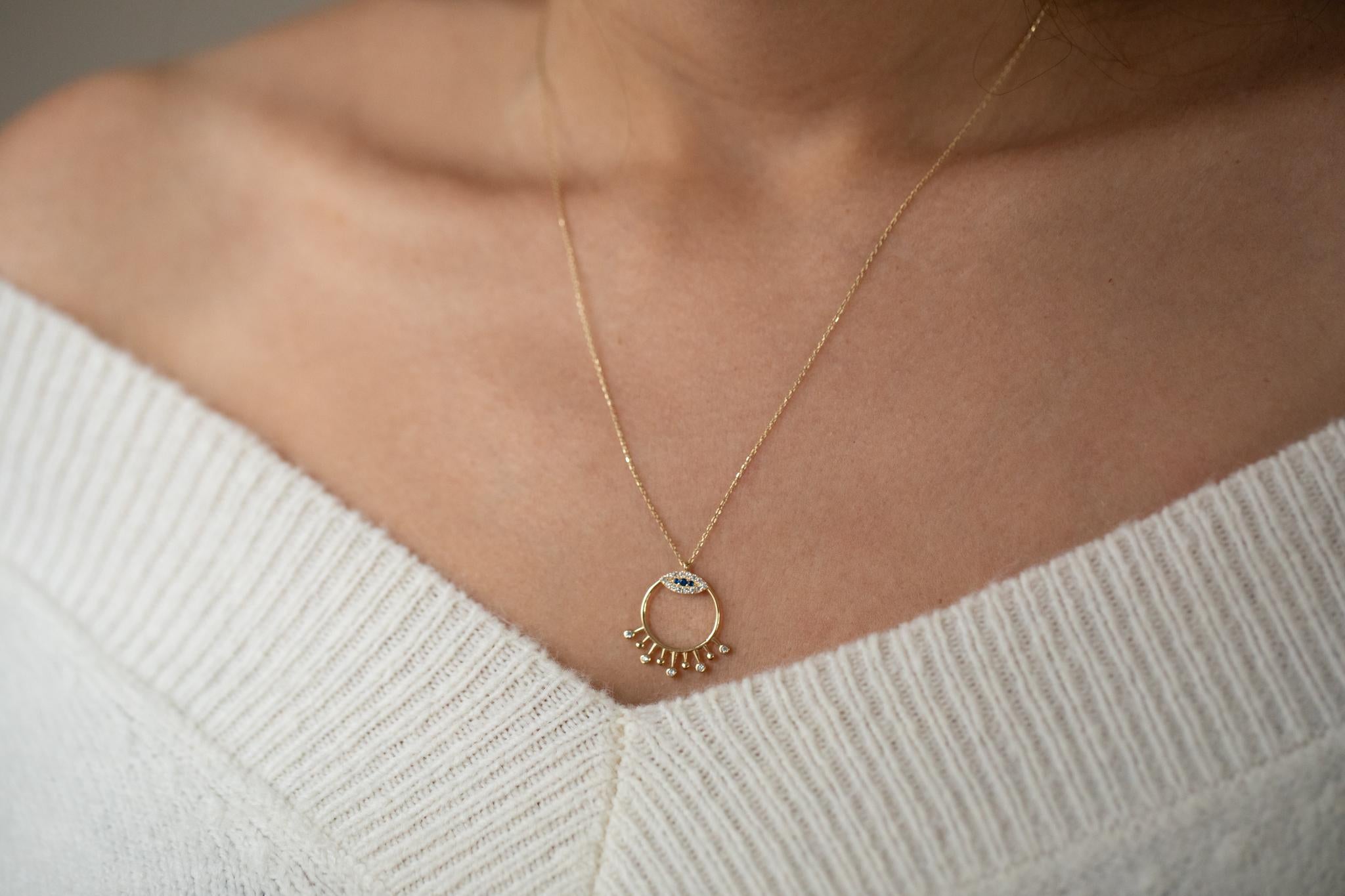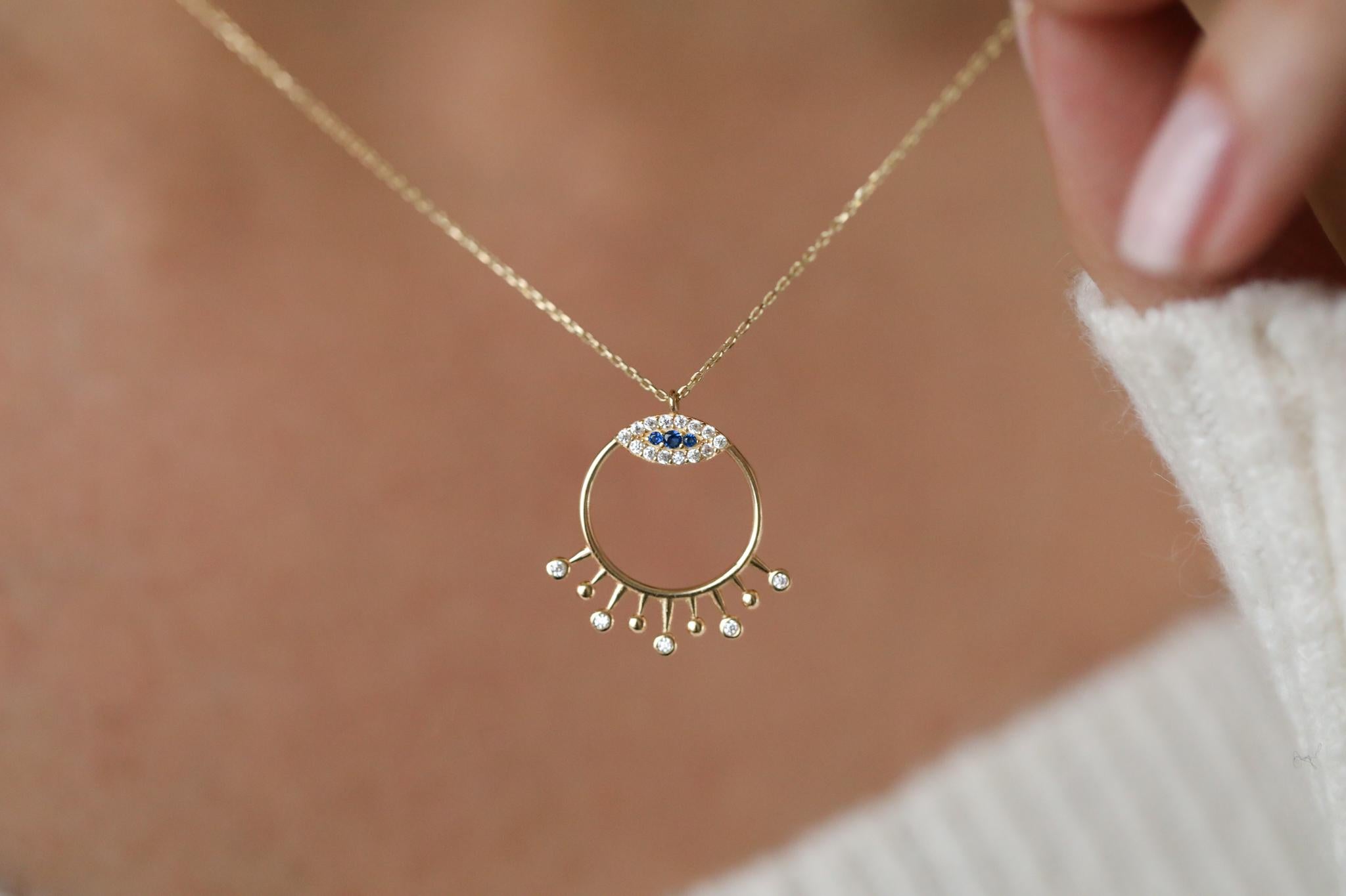 Taşlı Çember Göz Altın Kolye