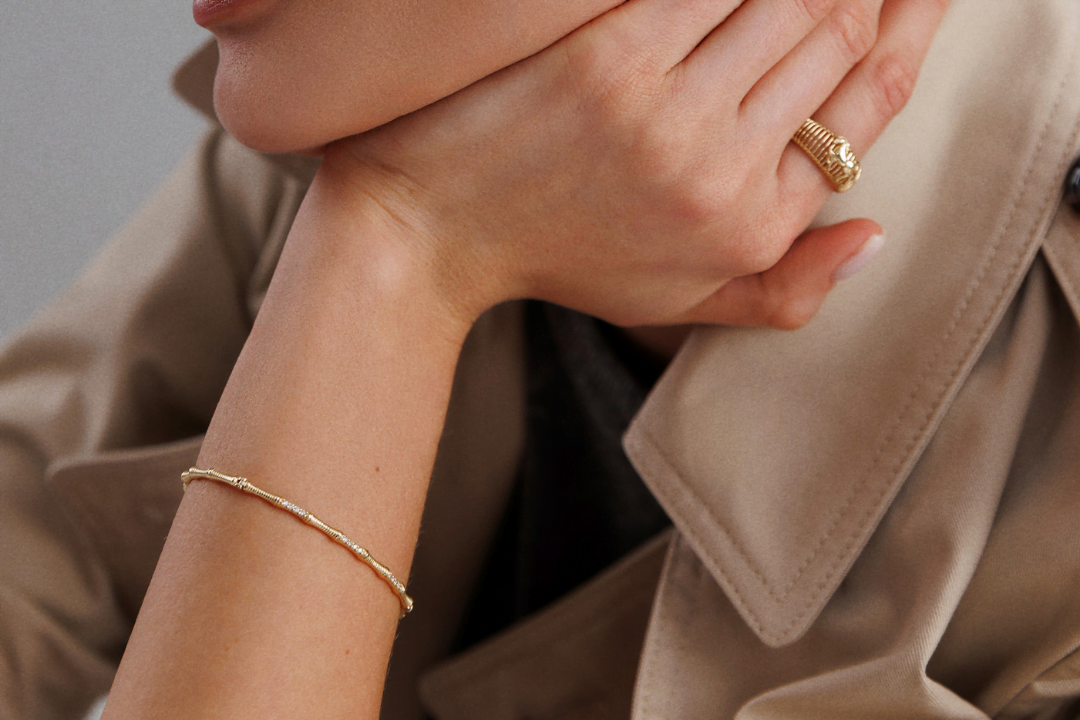 Livia Pırlanta Bileklik, modern tasarımın zarif estetiğini vintage dokunuşlarla harmanlayarak eşsiz bir stil sunuyor. Kelepçe bileklik formunda tasarlanan bu özel parça, hareketli yüzeyi ve sıra tektaş pırlanta detayıyla şıklığınızı ön plana çıkarıyor. Klasik ve modern unsurların kusursuz uyumunu yansıtıyor.