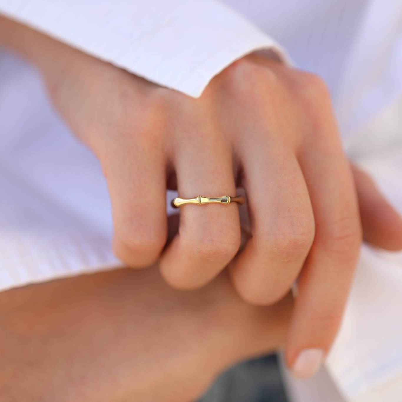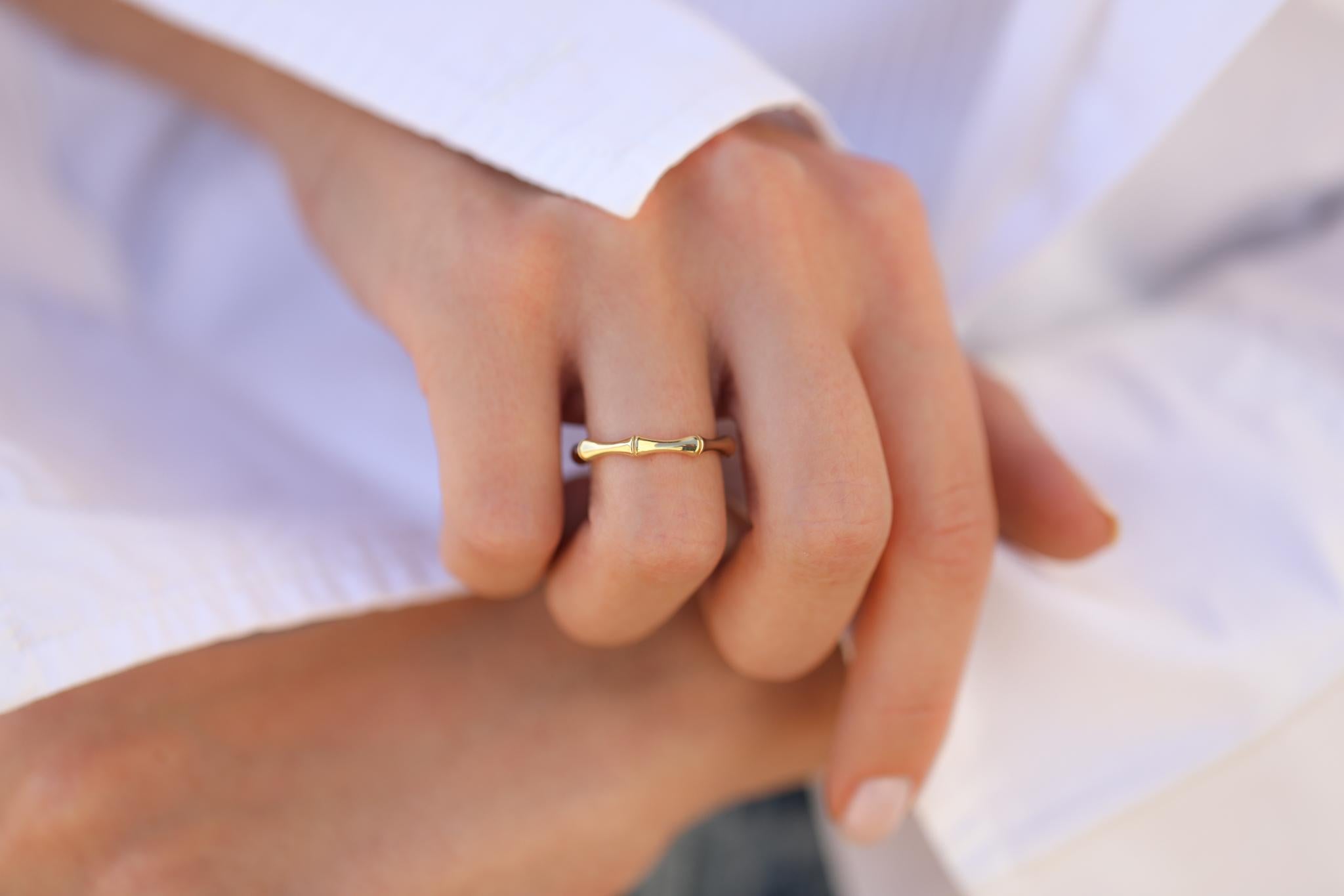 Kemik Altın Yüzük, zarif detaylarıyla sadeliği ve şıklığı harmanlayan trend bir parça olarak öne çıkıyor. Kemik görünümüyle tasarlanmış bu yüzük, modern estetiği klasik dokunuşlarla buluşturuyor. İnce ve zarif hatları, parmağınızda özgün bir siluet yaratırken, minimalist tarzı ile her kombine mükemmel uyum sağlıyor.