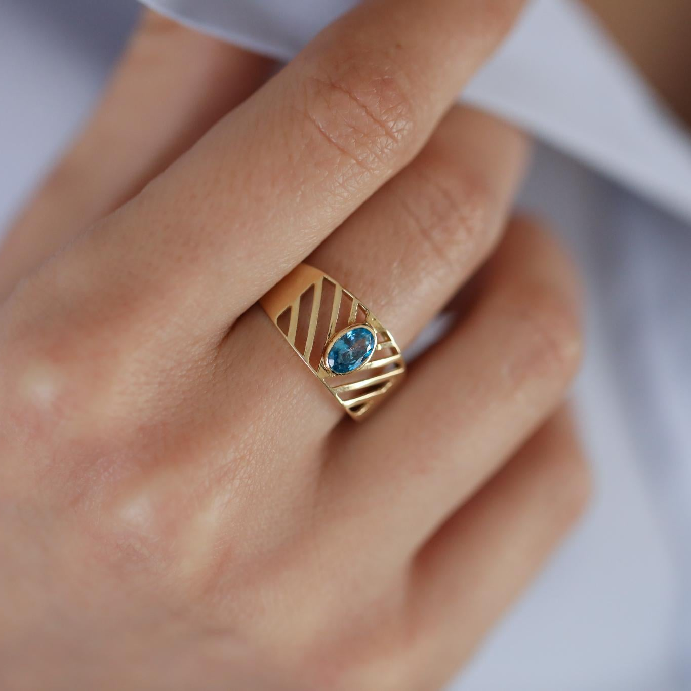 Mavi Oval Taşlı Modern Altın Yüzük
