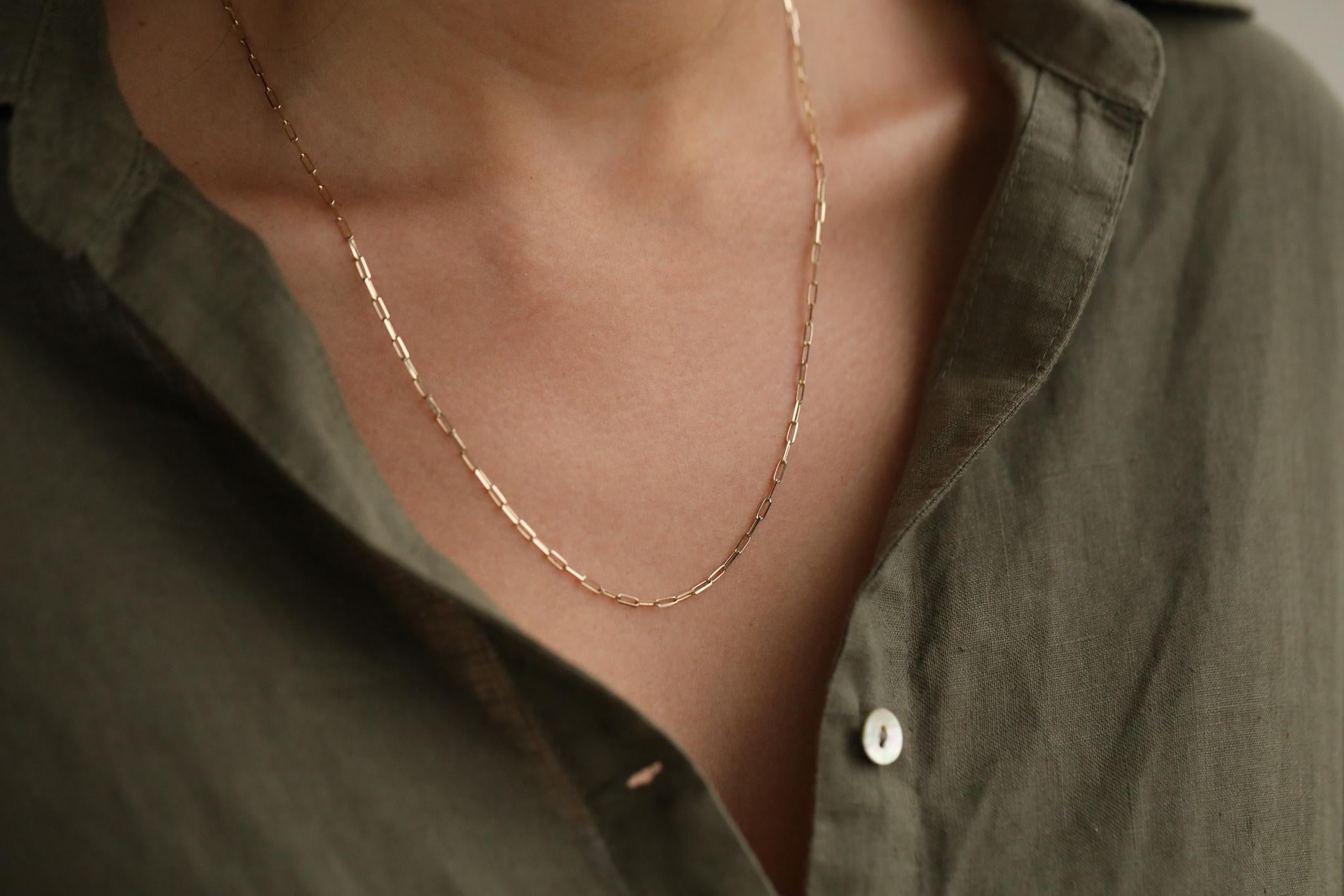 14 ayar altından üretilen bu kolye, hem hafif yapısı hem de şıklığıyla günlük hayatta kolaylıkla tercih edilebilir. Minimalist stilin zarafetini yansıtan bu parça, kişisel tercihinize göre istenilen uzunlukta üretimi yapılabilir bir kolye olup şıklığına önem verenler için idealdir. Ayrıca, ömür boyu tamir ve bakım garantisi ile birlikte geliyor, böylece bu özel aksesuar her zaman yanınızda olacak.