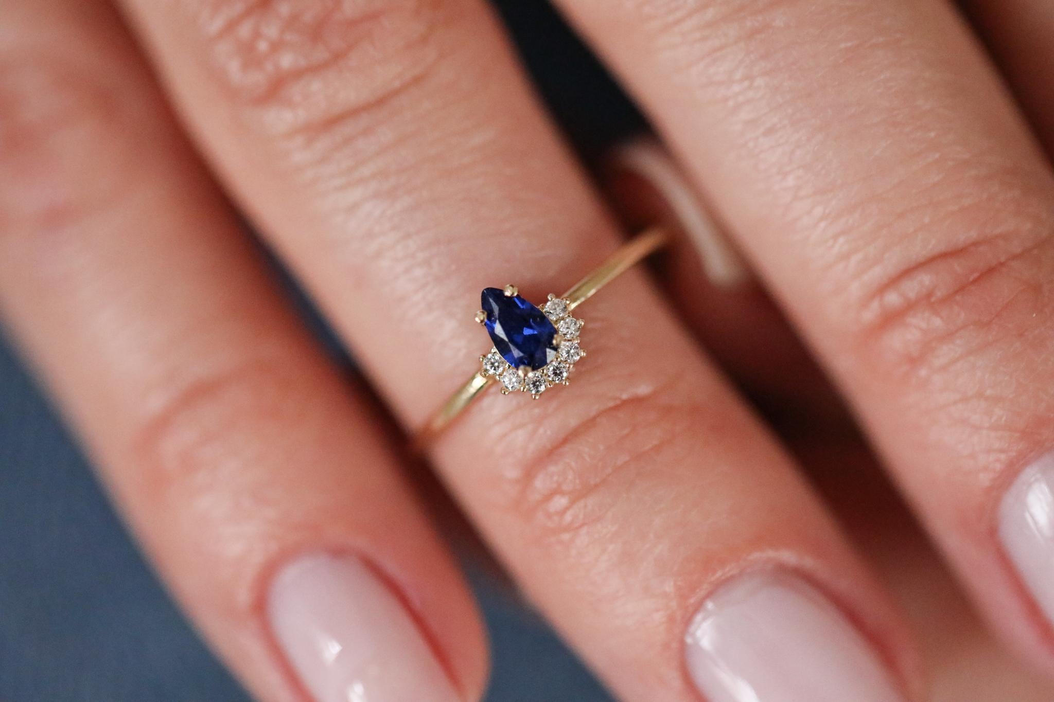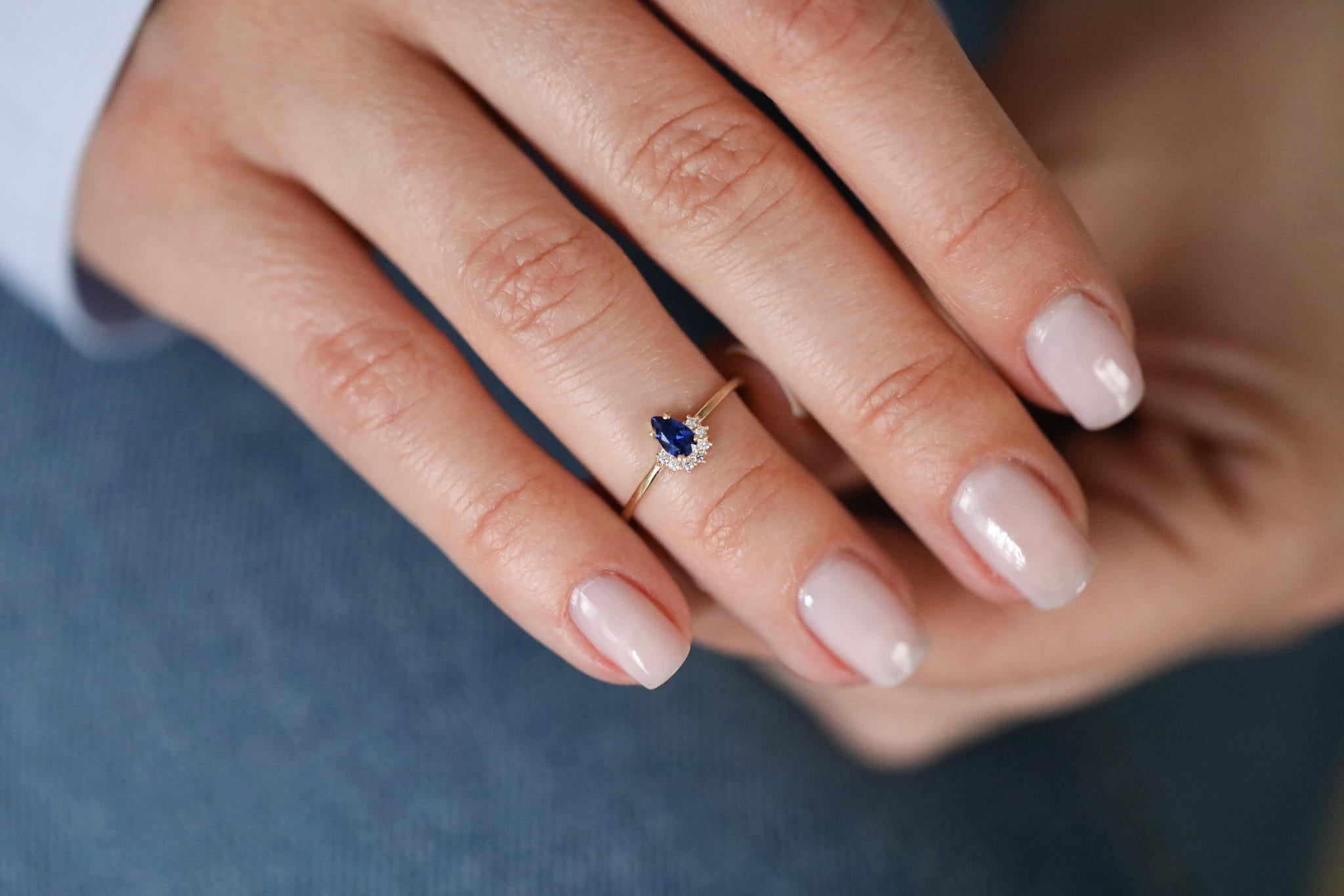 Minimalist Zarif Altın Yüzük, modern tasarım anlayışını sade ama etkileyici detaylarla buluşturuyor. İnce işçilikle şekillendirilmiş yüzüğün merkezinde, derin bir mavi damla taş bulunuyor. Bu taşın çevresinde yer alan zarif tektaşlar, yüzüğün dikkat çekici ama aşırıya kaçmayan bir şıklık sunmasını sağlıyor. Günlük kullanımda sadeliğiyle göz alırken, özel anlarda zarafetiyle ön plana çıkıyor.